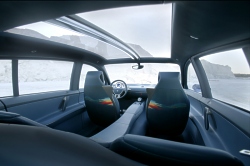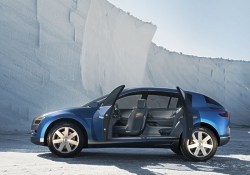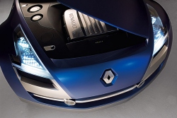 Egeus features four independent seats with all the comfort of a luxury car. Noble materials and a subtle blend of colours and textures distinguish the spacious interior. The relaxed, elegant atmosphere adds to the feeling of serenity inside the cabin. The “Cythère Blue” bodywork, the “manta ray” dashboard and the blue-tinted hues of the cabin evoke an underwater world. The leather upholstery in woven beige tones, inspired by a pixelated image of a setting sun, creates a warm atmosphere. The centre console, upholstered in blue-tinted leather, echoes Egeus' undulating sides. It incorporates three generous stowage compartments in addition to the two front-door bins. The cabin is warm and welcoming thanks to the glazed roof and a central strip with two transparent sections. The side door handles are flush-fitting so as not to detract from the streamlined sides. An optical sensor detects an approaching hand and pushes the handle out a few centimeters, making it easy to grasp. The GPS navigation system calculates the recommended speed which is then shown in the centre of the speedometer dial, with its analogue and digital displays. LED diodes around the dial flash to alert drivers if they go over this speed. In off-road mode, an indicator on the instrument panel is automatically activated to show the car's attitude to the horizontal and alert the driver if there is any risk of roll-over. At the top of the dashboard, a centrally-positioned´interactive screen relays information to passengers, in particular a detailed trajectory map. The intuitive controls are true to the principles of Touch Design. The central rotary speed selector benefits from simple ergonomic styling. The ideally located multimedia control lever makes for easy handling while the steering wheel-mounted controls mirror the natural curve of the hand. Power and control The 250hp 3.0-litre V6 diesel engine, mounted north-south, gives Egeus both power and agility. Euro 4 compliant, it is fitted with a particulate filter. The fully-automatic 4WD transmission regulates traction on the four wheels from 0 to 100% according to grip. This, combined with a seven-speed flick-shift automatic transmission, ensures a high level of driving comfort while substantially reducing fuel consumption and CO2 emissions. Michelin Egeus is fitted with Michelin Eden Weiss tyres. Striking a perfect balance between sensitivity and performance, these tyres are ideally adapted to Egeus’ dual function: the adaptability of a roadgoing vehicle that can also handle off-road conditions. The front and back tyres are mounted differently. These tyres are designed to better withstand friction and in doing so reduce fuel consumption and CO2 emissions. The compact, closed tread minimizes deformation and therefore energy loss. The long, shallow grooves help reduce road noise while ensuring a firm grip in off-road conditions. The centre of the front tyres' tread, with a less open tread pattern and water-holding capacity, is designed to transmit power to the ground and provide good grip on wet roads. The rear tyres have rigid shoulders for optimal handling during cornering. Thanks to the PAX System, Egeus doesn’t need a spare wheel. Valeo Egeus’ boomerang-shaped headlamp function as running lights and indicators, thanks to LED diodes in two different colours. This optical system, developed in partnership with Valeo, matches efficiency with an innovative and compact design. All light comes from high-performance diodes and, as on Fluence, the amount and direction is adjusted according to the steering angle. On twisty roads, an electronic function automatically directs the beam. On motorways, the diodes are automatically activated and modulated to maintain a constant and optimal range without dazzle. Their colour is similar to that of daylight for greater comfort and visibility. These diodes have a significantly longer lifespan than any existing light source.