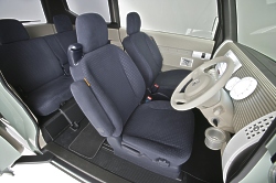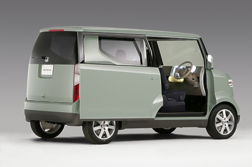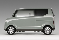 "Following the traditional Honda theme of 'man maximum, machine minimum,' the Step Bus seeks to create the largest possible interior with the smallest possible exterior," said John Mendel, senior vice president of American Honda Motor Co., Inc. "This innovative concept vehicle shows how large functionality can easily exist within small vehicle packages." The Step Bus Concept is a product of the Honda R&D Co., Ltd., Wako design center in Saitama prefecture, Japan. Purely a styling concept, the vehicle uses a mid-engine, rear wheel drive platform with a small displacement power plant. The 5-passenger interior features modular construction with a spacious interior. The modular construction is highlighted by tracks in the door that can hold beverage containers, cell phones and more. Advanced technology includes a next-generation navigation system. The tall body provides room for a ceiling-mounted storage tray. Painted in light green metallic, the body design embraces a bold vertical architecture style that creates a large presence within a small space. November 30, 2006