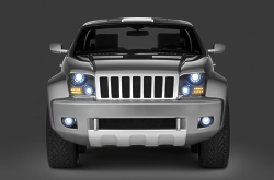 fronted by a signature seven-slot Jeep grille angled rearward to match