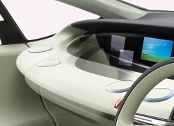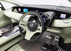The FCX Concept is a fuel cell vehicle that delivers style and excitement. A futuristic, premium-quality interior Luxurious seating takes full advantage of the generous cabin space, providing passengers with an extremely comfortable experience. Contrasting materials, from futuristic transparent plastics to classic leather and wood, combine to produce a warm, welcoming interior with an advanced feel. Intriguing elements like an instrument panel that appears to float in space, an interactive floor that uses lighting to indicate changes in cabin temperature, and premium reclining shell-like seats and foot rests in the rear make passengers feel right at home. elements like an instrument panel that appears to float in space, an interactive floor that uses lighting to indicate changes in cabin temperature, and premium reclining shell-like seats and foot rests in the rear make passengers feel right at home. Speed Sensitive Adjusting Instrument Panel The instrument panel in front of the passenger seat tilts up and down 45 degrees in response to vehicle speed. Tilting the panel upward during high-speed driving gives the passenger a sense of security, while tilting it downward during low-speed travel opens the space for a more relaxed feel. Biometrics Driving Unit Approaching the vehicle, the driver is recognized by vehicle sensors and intelligent cameras, and the vehicle’s doors unlock.The driving unit also automatically sets the steering wheel, accelerator pedal, and instrument panel to the optimal position for the driver. Line-of-Sight Operated Switches A system installed in the instrument panel senses the driver's line of sight shifting toward menu icons, and operates switches accordingly, allowing the driver hands-free operation of audio, air-conditioning and other vehicle systems. Oct 20, 2005