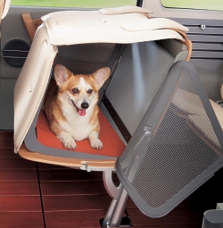 Mesh at the front and sides assures adequate ventilation, and its position facing the passenger seat makes it easy for you and your pup to keep an eye on each other as you ride. Flexible seating: 4 people, 6 people, or 4 people + a dog The standard configuration of the interior is four individual seats, but six can be accommodated when you slide the rear seat to the back and pull out the extra seat stowed in the floor. Or the seatback and cushion of the extra seat can be detached to form a crate for a larger dog. Powered dual sliding side doors and a split double tailgate provide easy access for people and pets alike The low, flat floor and wide door openings provide easy access for everyone, from children and senior passengers to canine companions. The powered swing- and-slide side doors open wide to the front and back, and the 70:30 vertically split rear tailgate provides easy access from the back. Thanks to the center walk-through, you step in at the tailgate and move freely all the way to the front of the cabin. Oct 20, 2005