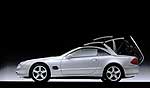 SL Coupe-Roadster Photo: DaimlerChrysler MONTVALE, N.J. - A new-generation Mercedes-Benz SL coupe/roadster -- the first in over 12 years - will debut in Europe this fall and arrive in the U.S. next spring. Perhaps the best-known Mercedes model ever, the new SL convertible will mark the fifth generation of the highly successful series, which began in 1954 with the legendary "gullwing" 300SL. The 2003 Mercedes-Benz SL is a technological tour de force, with ABC active suspension and ESP stability control to the world's first electronic brake system. The new SL also features breathtaking styling, capped by a retractable hardtop that combines the open-air fun of a convertible with the quiet comfort of a coupe. Faster, Smarter Braking with World's First Electronic Brake System The company that invented ABS anti-lock brakes, traction control and ESP stability control will launch the world's first production car equipped with an electronic brake system, which provides faster, more sure-footed brake response, especially in emergencies. The brake pedal on the 2003 Mercedes-Benz SL500 works with a computer that tells four fast-acting valves exactly how hard to apply the brakes on each wheel. A backup hydraulic master cylinder comes into play only if there's a serious problem or electrical failure. With split-second accuracy, the system can change brake pressure on each wheel over uneven surfaces and can even increase brake pressure on just the outside wheels when braking in turns, taking advantage of the higher loading during cornering. Even ABS anti-lock and ESP stability control work more efficiently since they are more deeply integrated with the brakes, instead of functioning as parallel systems. A special electrically-driven hydraulic pump and a high-pressure reservoir (or accumulator) provide "always-on" full brake pressure at each wheel. The computer-operated modulator valves control how much pressure actually operates the brakes at each wheel. In the new system, the bulky vacuum brake booster is now obsolete. If the driver switches his foot quickly from accelerator to brake pedal, the electronic brake system recognizes the early signs of an emergency situation and reacts automatically. With the help of the high-pressure reservoir, the system raises the pressure in the brake connectors and instantaneously moves the pads onto the brake discs, which can then spring into action with full force as soon as the brake pedal is pressed. At highway speeds, this pre-loading of the braking system reduces stopping distance by about three percent. In addition, the system automatically senses when the road is wet and imperceptibly applies the brakes just enough to keep the discs dry, so that brake operation remains fast and consistent in the rain. From Coupe to Roadster in 16 Seconds