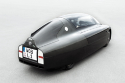 Photos: VW The world's first 1-litre car licensed for road use resembles a sports car more than a typical research vehicle in appearance. Since the concept calls for a reduced frontal area to minimise exposure to the airstream, the 3.65 m long body is exceptionally narrow and low-built. Developed in the wind tunnel and built entirely from composite carbon-fibre reinforced material, it has a width of only 1.25 m and is just over a metre high. The body is unpainted in order to save weight. The reinforced plastic outer skin conceals a space frame that is not constructed from aluminium but from magnesium, an even lighter metal. The one-litre car is powered by a single-cylinder diesel engine located in the mid-engined position ahead of the rear axle and combined with an automated direct-shift gearbox. The crankcase and cylinder head are of aluminium, using a monobloc construction principle. A direct-injection, naturally aspirated diesel, with a capacity of 0.3 litre, it develops 6.3 kW (8.5 bhp) at 4000/min and is equipped with an advanced high-pressure pump-injector fuel supply system. Despite these modest figures the car is surprisingly lively thanks to its weight of only 290 kilograms. The suspension uses light-alloy components and the car runs on 16-inch low-friction tyres optimised to keep rolling resistance to a minimum. The wheels too are made from an extremely light composite material to harmonise perfectly with the ultra-economical power train. The interior is sporting in style and extremely compact, but provides sufficient space for the driver and one passenger; it is reached by folding back the dome-shaped hinge-up door. The seats are also of extremely lightweight material, with magnesium frames and high-strength but none the less comfortable tensioned woven fabric instead of the classic upholstery. Although weight-saving construction methods have been applied throughout, safety was none the less given close attention during every phase of the 'one-litre' concept car's development. It has an anti-lock braking system, the ESP electronic stability program and a driver's airbag among its safety features. Deformable elements at the front and the space frame construction provide the same standards of impact and overturning protection as in a GT racing car. It is the sports-car style concept of the one-litre car that distinguishes it from the spartan research vehicle such as one might have expected: this is a specially designed high-tech vehicle, as demonstrated by many of its features. For a start, the seating arrangement puts the driver and passenger centrally, as in a classic racing car, but one behind the other in tandem. The mid-engined layout puts the power unit transversely behind them, ahead of the rear axle. The lightweight suspension, of complex design, uses double wishbones at the front and a De Dion rear axle layout. In conjunction with the low centre of gravity and low weight, the car steers in a very agile manner. The project team has thus succeeded most impressively in creating a car with almost incredibly low fuel consumption that also happens to be fun to drive. The one-litre car has a number of highly practical, almost luxurious details. Under a separate lid at the rear is an easily accessible load area with a capacity of 80 litres; reversing is aided by a rear-view camera, and automatic locking and releasing of the lift-up door, together with a starter button for the driver, mean that a conventional ignition key is not needed. Viewed as a vehicle concept - with four wheels, but very low-slung and with two seats in tandem - the one-litre car is perhaps an indication of a totally new family of cars. It could open up new demand areas extending all the way from a 'super-saver' as seen here to a low-cost day-to-day touring vehicle for young people or even a supersport model with outstandingly high performance. (April 15, 2002) [Homepage] [