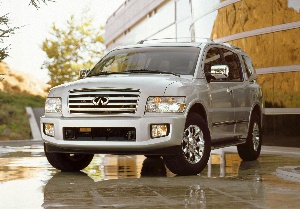 2004 Infiniti QX56 The all-new Infiniti QX56 full-size luxury sport utility vehicle joins the growing lineup of powerful rear-wheel and all-wheel drive Infiniti vehicles in the spring of 2004. It becomes the first Infiniti model assembled in North America. The QX56 is designed to provide luxury on a grand scale, with eight-passenger seating (seven-passenger with 2nd row captain's chairs), standard features such as leather-appointed seating and DVD-based navigation system, advanced technology and a powerful V8 engine and an independent rear suspension (IRS) with load leveling - which contributes to the QX56's comfortable, composed ride quality. Every QX56 comes equipped with a standard 5.6-liter DOHC 32-valve Endurance V8 engine, producing 315 horsepower and 390 lb-ft of torque, mated to a refined 5-speed automatic transmission. All QX56 all-wheel drive models feature an advanced, All-Mode full-time design with infinitely variable torque split (maximum 50:50 front/rear). The new QX56's advanced safety technology features include standard supplemental curtain air bags for side impact and rollover protection for all three rows, Advanced Air Bag System (AABS), side-impact supplemental air bags (front seat mounted) and Vehicle Dynamic Control (VDC) system with Active Brake Limited Slip (ABLS). 2004 Infiniti G35 AWD The popular 2004 G35 Sport Sedan is now available in an all-wheel drive model. The new G35 Sedan AWD model features an advanced all-wheel drive system with an active torque distribution management system with an electro-magnetic center differential. The advantage of this system's design is smooth starts and better traction and maneuverability on snowy roads and minimal compromise of rear-wheel drive performance characteristics on dry roads. Torque distribution front-to-rear is computer controlled and is variable between approximately 0:100 and 50:50 front:rear. A "Snow-Mode" switch allows the system to achieve a torque distribution ratio of 50:50 at low speeds. Along with the addition of the AWD model, the 2004 G35 now comes with standard heated outside mirrors, 17-inch wheels on all models, a Tire Pressure Monitor System (TPMS), standard rear viscous limited-slip differential on the Leather 6MT model and the availability of two new exterior colors - Diamond Graphite and Twilight Blue. All 2004 G35 Sport Sedans, including the new all-wheel drive version, come standard with a 260-horsepower 3.5-liter V6 engine, part of the award-winning VQ engine series, and 4-wheel independent multi-link suspension. A 5-speed automatic transmission with manual shift mode is standard on the G35 Sedan, Sedan Leather and Sedan Leather AWD models, while the Sedan Leather 6MT model features a close-ratio 6-speed manual transmission. (Jan. 5, 2004)