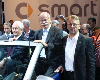 The high level of passive safety has been further improved. Internal crash tests have shown that the smart fortwo will be at the level of four EuroNCAP stars. And that’s not all: as the new smart fortwo will be sold in the USA from 2008 it also complies with the strict American crash regulations. Likewise, new regulations concerning pedestrian protection have been implemented in the front section. Furthermore, new head/thorax side airbags offering extensive protection in the event of a side crash are available as an option. The outstanding economy of the smart fortwo is underlined by further optimisations. Despite the greater engine power, the petrol versions consume less than five litres of fuel over 100 km. The smart fortwo with a starter generator that will be available from the end of 2007 and will be based on the 52 kW petrol version, promises further savings of up to 13 percent in city traffic. This has particular advantages when driving in urban areas and frequent stop-and-go traffic: the three-cylinder engine automatically switches off when the car stops at traffic lights, for example. It starts again as soon as the driver presses the accelerator pedal. The new smart fortwo cdi consumes even less fuel. The diesel engine in the predecessor model already had the lowest consumption of its class and the new smart fortwo also achieves "three litre" status (corresponds to consumption of less than 3.5 litres/100 km under standard conditions) with emissions of just 90 grams of carbon dioxide per kilometre. Alternative drives are also possible and the new smart fortwo has been designed to allow for quick implementation of natural gas or electric drive concepts – as soon as there is a demand for these new drive systems and they become economically viable. The smart fortwo cabrio's electric soft top is a further example of the enhanced comfort. It is now fully automatic and can be infinitely adjusted to any position. This means that the rear part, too, can be opened to the final position and closed again at the touch of a button. Unique: the smart fortwo doesn't have to be stationary for this – the soft top can be opened and closed at any driving speed. Furthermore, the roof bars can be removed and stowed in a special compartment in the tailgate. The soft top offers further added comfort and safety with the heated rear window made of glass. The equipment lines continue to go by the names of pure, pulse and passion. Whereas the basic pure version has a plastic roof, the pulse and passion feature a transparent, high-strength panoramic roof made of polycarbonate. Fans of the BRABUS variant also have something to look forward to: the introduction of an uprated BRABUS variant is planned for autumn 2007. The smart fortwo can be individualised and tailored to customer requirements with a wide range of extras. These include head/thorax side airbags, air conditioning (standard for passion), electric power steering, heated seats, alloy wheels (standard for pulse and passion), leather seats, Isofix child seat fastener, a high quality audio system with a CD changer for 6 CDs and a sound system featuring a subwoofer and an MP3 interface. The basic price for the new smart fortwo will stay at the level of the predecessor model. The diesel variant, too, will remain an inexpensive "three litre" car that will continue the great success of its predecessor. Likewise, the new smart fortwo cabrio will continue to be by far the cheapest production cabriolet available worldwide. (November 9, 2006)