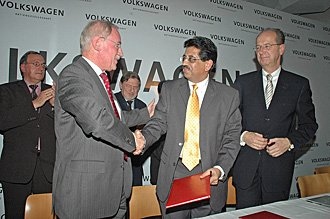 “This is how we can bring locally produced vehicles promptly to the Indian market. We will start by producing models such as the Passat which will allow us to offer a strong model at an attractive price,” Pötsch said. Imported vehicles such as the Volkswagen Touareg and Phaeton will complement the range. At the signing ceremony, Pötsch underlined the significance of the Indian market for the Volkswagen Group: “From our view, growth perspectives are very positive. As Europe’s largest automaker, we intend to play a proactive role in shaping this dynamic growth.” He stressed that Volkswagen would be entering the Indian market with the right products to meet the rapidly-growing demand for mobility. “Volkswagen will be developing a vehicle in the foreseeable future specifically tailored to the needs of the Indian market. This model will have a very attractive price while offering all the essential features of a genuine Volkswagen with all the benefits of our brand. That is how we will make sure that ‘Volkswagen quality built in India’ is a genuine unique selling proposition and a symbol of quality.” (November 29, 2006)
