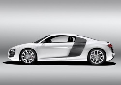 The specific power output is 100.9 hp per liter of displacement – and each hp has to propel only 3.09 kilograms (6.91 lb) of weight, because the Audi R8 V10 in the version with the six-speed manual gearshift weighs only 1,620 kilograms (3571 lb). The engine accounts for 258 of these kilograms (569 lb) – that’s only 31 kilos (68 lb) more than the V8. The Audi R8 5.2 FSI quattro rockets from zero to 100 km/h (62.14 mph) in 3.9 seconds. In the version with the sequentially shifting R tronic it reaches 200 km/h (124.27 mph) in another 8.1 seconds. Even then its propulsive power hardly lessens: it’s sufficient to reach a top speed of 316 km/h (196.35 mph). The immense force, the spontaneity and the thrust of the acceleration, plus the sound of the engine – all these impressions coalesce into a breathtaking sports car experience. The V10 plays a concert with growling bass tones and powerful high notes, which grows into a grandiose fortissimo as the engine revs up. This sonorous acceleration doesn’t reach its limit until 8,700 rpm. The 5.2-liter powerplant uses direct injection according to the FSI principle developed by Audi. A common rail system injects the fuel into the combustion chambers with up to 120 bar of pressure. Direct injection reduces the susceptibility to knocking and provides a certain amount of cooling through the evaporation of the fuel, which in turn supports a high compression ratio of 12.5:1. This in turn contributes to superior performance and improves fuel economy. The R8 V10 with R tronic gets by on an average of 13.7 liters per 100 km (17.17 US mpg). The R8 5.2 FSI quattro has a six-speed transmission. A precise and smooth-shifting manual transmission comes as standard equipment. The sequential R tronic is available as an option. The high-tech gearshift conveys an authentic racing feel – with the rocker switches at the steering wheel and the short shifting times of usually less than one-tenth of a second. When the driver actuates the Launch Control program by pressing a button, the R8 V10 takes off in a vehement quick-start with electronically controlled tire slip – both with the R tronic and with the manual transmission. The Audi R8 5.2 FSI quattro combines its colossal performance with a generous complement of standard equipment. Highlights include heatable seat covers made of Fine Nappa leather, a driver information system, the navigation system plus and the Bang & Olufsen sound system along with deluxe automatic air conditioning and an alarm system. The instruments and the gearshift knob are decorated with red rings; the footrests and the rocker switches of the R tronic have an aluminum finish. The list of options includes other highly attractive features – such as the Audi parking system advanced with its integrated rearview camera or numerous Audi exclusive customization options. Various leather packages provide a luxurious touch, while the bucket seats from the Audi exclusive program bring a highly concentrated racing atmosphere into the R8 V10. The Audi R8 5.2 FSI quattro will be rolled out in Germany in the second quarter of 2009 at a basic price of EUR 142,400. Photos: Audi (Dec 09, 2008)