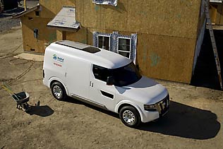 But imagine the case a marine biologist/photographer. When setting off on an expedition, he or she might take along a mountain of equipment – including underwater cameras and lights, scuba diving equipment, an underwater scooter, computer equipment for downloading digital images, mobile communication equipment to send the images to clients or research centers, clothing, food and water, and perhaps camping or overnight gear. This is typically enough equipment to fill a van, with little space left over for an on-site office. That’s where innovation comes in. A Unique Slide-Out Cargo Pod At the heart of Nissan NV200 is a patented sliding cargo pod, which is divided into a number of separate areas where different pieces of diving and photographic equipment can be stored. The pod is latched inside the shell of the load area when the van is being driven. Upon arrival at its destination, it slides out rearwards to allow easy access to the storage zones. The pod is deployed manually with the aid of hydraulic rams, and sits securely on integrated “drop-down” legs when fully extended. As the pod is withdrawn from the van, the area left behind is transformed into a mobile office and IT dock. A computer table drops down from the side of the van to reveal two LCD screens upon which images can be edited. The front passenger seat swivels backwards on a single curved rail to face the table. Along with housing diving gear in separate “wet” lockers, the pod holds four air tanks and there's a specially shaped area to securely hold the underwater scooter. Lockable roller blinds protect the contents, while valuable camera equipment can be accessed either from within NV200 or from outside the pod. From the outside, NV200 is the epitome of a modern van. A cab-forward design, the wraparound grille blends into upswept lines on either side of the cabin. Dramatically rising side windows accentuate a high waistline and underline the van's practical, load carrying ability. The NV200 sits on a long 111.4-inch wheelbase and is 72.4 inches tall, providing a practical, roomy load space. When the pod is deployed, solar panels built into its roof are directly exposed to daylight. But even when the pod is pushed back into the van, the panels line up beneath the NV200’s large skylight. In this way, power can be generated in daylight hours, whether the vehicle is stationary or not.
