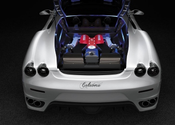 Technical Details 707 hp / 520 kW, 712 Nm, 0 – 100 km/h in 3.5 seconds, a top speed of 348 km/h and extremely sporty interior appointments. At the heart of the CALAVERA lies the NOVITEC ROSSO twin-supercharger engine in its latest evolutionary stage. Up to now, the eight-cylinder, four-valve engine with a displacement of 4,308 ccm and mechanical NOVITEC ROSSO twin superchargers produced 656 hp / 482 kW. The sprint from rest to 100 km/h is shortened by half a second to 3.5 seconds. After just 10.5 seconds the car reaches 200 km/h. The 300-km/h barrier is shattered after 29.9 seconds. In combination with longer gear ratios available upon request the top speed grows from 315 km/h to 348 km/h. 20-inch wheels instead of the standard 19-inch wheels: The three-piece NOVITEC ROSSO NF3 double-spoke wheels in sizes 8.5Jx20 in front and 12Jx20 on the rear axle fill out the F430 wheel houses perfectly. High-performance tires in sizes 235/30 ZR 20 and 325/25 ZR 20 come from technology partner PIRELLI. Like all other body components the NOVITEC ROSSO front spoiler was developed in the wind tunnel. It is attached to the underside of the production front apron. It lends the F430 an even more aggressive frontal appearance and reduces lift on the front axle Agile, safe handling is one of the strengths of the NOVITEC ROSSO sport suspension for the Ferrari, optimized everyday use the other. Contrary to the production suspension the front can be raised by 40 millimeters at the push of a button to safely navigate past curbs, driveway entries and speed bumps. Once the car reaches a speed of 80 km/h the suspension automatically lowers itself back to normal position, about 35 millimeters lower than the production car. NOVITEC ROSSO sport stabilizers reduce body roll and provide even more direct turn-in. To be able to safely control this enormous performance potential at all times NOVITEC ROSSO also modifies aerodynamics, tires, suspension and brakes. (May 8, 2009)