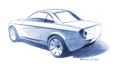 The Fulvia Coupé was a fine example of the elegant sportiness that has always typified certain models produced by Lancia. It took just a few touches to convert a road vehicle into a racing car. Even now, the public applies the HF tag indiscriminately to the Fulvia Coupé model without distinguishing road cars from cars destined for racing activities. Think back to the legendary Fulvia Coupé Rallye 1.6 HF that won the Montecarlo Rally in 1972 with Sandro Munari aboard and also raced off with the world Brand Championship. The following year, the Lancia model pulled out of official racing and in 1976 the Lancia Fulvia Coupé ceased production after 140,000 had been built. And now, forty years on from the debut of the first Fulvia saloon and thirty-one years after Munari's victory, Lancia has decided to build a prototype to celebrate one of the models that made the brandname famous throughout the world. Apart from anything else, the Lancia Style Centre designers have always had one perennial dream: to recreate the Fulvia Coupé as though it had been left free to evolve without interruption. The approach to the project was very clear from the outset: no nostalgic self-indulgence but a post-modern reworking of the original concept and styling cues. The dimensions and three-box shape of the Fulvia Coupé show car are practically identical to those of its predecessor but the track has been broadened to give the car greater stability and strength. The general layout is reminiscent of Riva motorboats of the period, i.e. a truncated tail, an extremely dynamic shape and a furrowing prow. The most distinctive stylist motif, i.e. a continuous horseshoe-shaped band that enfolded the entire body only to emerge at the tail, was reworked to give the car a more dynamic appearance and a tapering shape. The point of greatest tension lies over the front wheel where all the visual weight of the car is also concentrated to underscore the front drive and engine. The end result is that the entire car appears to be pulled along from this point. The drop-shape of the car from above with maximum width at the front and a tendency to taper off toward the truncated tail also contributes to this effect. The shape is complemented by a long bonnet, a small glazed area and a specific weight distribution pattern. The 1965 Fulvia Coupé featured a characteristic lightness of volume that was even more evident at the rear. The new show car, however, is more muscular in appearance but lightened by fact that the lower part of the vehicle recedes toward the tail. The aggressive-looking front features a broad, rounded bonnet, headlights made out of high-tech modules and a wing-shaped 'brow' that extends the bonnet profile visually below the lights. The burnished metal grille that bears the big Lancia shield looks sporty and three-dimensional. It has been deliberately deconstructed and simplified compared to its less aggressive sisters to emphasise the function of the air intake and create a relationship between solid metal and air at the front that reflects the pattern of the previous model. Everything is completed by lines that flow from the bonnet to the bumpers and gather around the lower outlet where four floating quadrangular cylinders hark back to the four air intakes of the Seventies model. The clean sides hinge on a succession of concave and convex surfaces and a sturdy shoulder. The tail, the logical conclusion to the entire shape, marks a return to the cross section of the original model: it would hardly be complete without a deliberate reference to the aft surface that was such a distinctive feature of the previous model and underscored the fleeting tail while providing an unfussy frame for the tall headlights. These features, run though by two cylinders that encircle the body like exhaust pipes, depend for their effect on a transparent covering that reveals how the lamps overhang from the wing-shaped profile (a subtle hint of the expressive 'eyes' so typical of the previous car). The three-coated Ivory body colour offers a harmonious contrast with the dark brown 'Testa di moro' leather that enfolds the passenger compartment. The interior has a decidedly Seventies feel with parts (manufactured using numerically controlled lathes) that are reminiscent of the iridescent controls on hi-fi systems of the period. The Tanganika Frisé wood that covers the central facia insert and tunnel bridge is silky in appearance with a metallic sheen. The interior features two bucket seats and an additional luggage compartment under the parcel rack. Its appearance is inspired by the original, though with a spare post-modern treatment. All the sophistication and sporty touches you would expect from a Lancia of this type are naturally in evidence. Examples include a set of bags produced specially for the show car by Trussardi using top-class original panels that represent an ideal combination between mood and practicality. The facia, made out of two opposing, hand-upholstered shells that embrace the leather insert, appears to be surrounded by a shell that stretches smoothly to the rear of the door panel to underscore a drop-shaped floor plan of nautical inspiration. The tunnel is actually an extension of the dark brown leather trim on the floor that flows fluidly up to form arms that mirror the armrests on the doors. The saddle-shaped theme reflects the formal language of the entire interior. If you sliced through the volume of the tunnel and the side armrests you would see a longitudinal wooden bridge in the centre that houses a gearlever (enhanced by aluminium parts) with looped door pulls on the doors. The overall look is rounded off by a three-dial analogue instrument cluster of nautical design that is pearlised in colour (similar to that of the new Ypsilon). A metal interface plate contains all the infotainment functions and the climate control system as on other Lancia range vehicles.