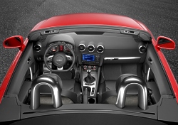 The manual soft top features a driver-operated central catch. A mesh wind deflector is available for both engine versions (standard on the TT Roadster 3.2 quattro), to reduce the airflow for the driver and passenger. It is extended and retracted electrically – none of the TT Roadster's competitors are able to boast a similarly customer-friendly concept. The interior The interior of the TT Roadster has likewise grown noticeably in size, offering extra headroom and elbow room. The width at shoulder height is now 1,362 mm, an increase of 29 mm. Deep-set sports seats provide particularly good lateral support for both the driver and passenger.