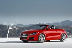 The four-cylinder engine that goes by the abbreviation 2.0 TFSI has a displacement of 1,984 cm3. It delivers an output of 147 kW (200 bhp) and develops 280 Nm of torque – the latter all the way from 1,800 rpm to 5,000 rpm. TFSI technology combines two modern principles in ideal fashion – it combines turbocharging with the petrol direct injection developed by Audi. The TFSI responds very directly to throttle movements and is mechanically very refined and acoustically pleasing to the ear. An international jury of automotive specialists voted it the "Engine of the Year" in both 2005 and 2006. Equipped with the S tronic gearbox, the Audi TT Roadster 2.0 TFSI accelerates from 0 to 100 km/h in just 6.5 seconds and goes on to reach a top speed of 237 km/h. It consumes just 7.8 litres of fuel per 100 km on average. The V8 engine has a displacement of 3,189 cm3. It musters 184 kW (250 bhp) and a torque of 320 Nm between 2,500 and 3,000 rpm. Thanks to its extremely narrow included angle of 15 degrees, this undersquare engine is extremely compact. Its two camshafts can be adjusted continuously for ideal cylinder filling. The TT Roadster 3.2 quattro with S tronic sprints from 0 to 100 km/h in 5.9 seconds and is capable of achieving a governed top speed of 250 km/h, delivering powerfully sonorous acoustics. It returns an average fuel consumption of 9.5 litres per 100 km. The chassis The sporty chassis has been fundamentally reengineered for the new TT Roadster. Its chief features are the complex four-link rear suspension, wide track widths, elastokinematics that have been heavily reworked, plus large wheels. The 2.0 TFSI rides on 16-inch factory-fitted alloy wheels, and the 3.2 quattro on 17 inch alloy wheels that can be supplied with run-flat tyres if desired. The front suspension, which is linked to a separate subframe, has the extensively used McPherson construction that has been refined by lightweight aluminium components. The power steering, with its electromechanical assistance, has a direct ratio and operates with responsive precision. On the four-link rear suspension, which likewise uses a subframe, the trailing links have a relatively soft configuration for reasons of comfort, to absorb the propulsive and braking forces. The three wishbones per wheel, on the other hand, are connected rigidly in order to introduce the transverse forces precisely into the body. The coil springs and shock absorbers are mounted separately from each other. The TT Roadster is configured for self-steering behaviour that is neutral to slightly understeering, and its newly developed stabilisation program supports this characteristic by intervening subtly when the limits of handling are approached. The four disc brakes are large in dimension. If necessary, a brake assist system ensures that they build up to maximum performance as rapidly as possible. The optional adaptive damping system Audi magnetic ride is a high-tech feature that assures the new TT Roadster an exceptional position within its segment. The driver determines at the push of a button whether the suspension response places the emphasis on comfort or dynamism. Circulating inside the shock absorber pistons is a special fluid containing microscopically small magnetic particles. If a voltage is applied to the magnetic field, prompted by a pulse which is activated by sensors, the behaviour of these particles changes. The viscosity of the fluid and therefore the damping characteristic can be adjusted within milliseconds. Equipment All versions of the new Audi TT Roadster leave the factory with an extensive standard specification. The standard equipment includes the new "chorus" audio system, a driver information system and, on the 3.2 quattro, an automatic air conditioning system. Optionally, there are two navigation systems to choose from. Then there is a universal mobile phone preparation and the resonant Bose surround sound system. An extra touch of class can be added to the interior's already sophisticated and sporty ambience by opting for the extended aluminium styling package. A storage package comprising three nets and four handy compartments builds on the standard storage facilities comprising the large door pockets and the two cup holders. Sporty customers will appreciate a load-through hatch complete with ski bag for the rear bulkhead. It can accommodate two pairs of skis up to 1.90 m long – a uniquely practical feature in the roadster segment.There is also ample space for a golf bag. There is an extensive range of options for the new TT Roadster. Xenon plus headlights that can be combined with the adaptive light cornering function can also be found on the extensive list of equipment options. They are fitted in conjunction with a headlight styling package that Audi includes as standard on the 3.2 quattro. The new Audi TT Roadster will be appearing on the German market in spring 2007; dealers will start accepting orders before the end of this year. For all its high-tech nature, its pricing is on a similar level to the previous model: the 2.0 TFSI costs EUR 33,800, and the 3.2 quattro is priced at EUR 43,800 (incl. 19 % VAT). November 2006