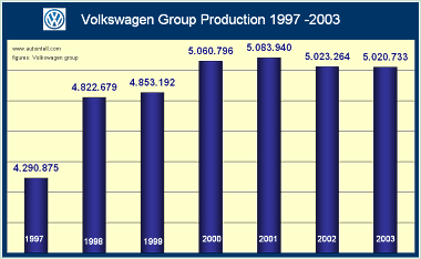 Detroit/Wolfsburg, 10. January 2005 - In 2004, the Volkswagen Group delivered 5.079 million vehicles to customers worldwide. “This is a good sales result given the weak situation on the world’s key automotive markets,” said Dr. Bernd Pischetsrieder, Chairman of the Volkswagen Group Board of Management, on Sunday in Detroit/USA. Pischetsrieder commented that the Group had felt the effects of the headwind on markets in Germany, China and the USA in particular. He did not expect any substantial impulses or dynamic growth from the markets during the current year. Due to high oil prices and continuing aggressive price battles, the situation on the world’s key markets would remain difficult. He reported that the Group would be launching 20 new models in 2005. The Jetta had just debuted in the USA. The new Passat would have its première in Germany in February. The Fox compact car would also be introduced in Europe. With these new models, the Group would maintain its position on world markets in 2005. The increase to 5.079 million vehicles (2003: 5.015 million) represents a rise of 1.3 % compared with the previous year. According to Pischetsrieder, growth was especially noticeable in markets where new models had been launched. The increase in Group sales was particularly strong in the South America/South Africa region, where deliveries to customers rose 25.2% percent to 533,000 units. Developments in Brazil were especially pleasing, with deliveries increasing 14.9 % to 362,000 vehicles. In Europe, deliveries to customers rose 0.8 % to 3.085 million vehicles. In Germany, Group sales rose by 1.2 % to 954,000 units. However, sales declined in North America (572,000; - 9.3 %) and Asia – Pacific (757,000; - 6.3 %). At 3.064 million (2003: 3.075 million), sales by the Volkswagen Passenger Cars brand remained on a par with the previous year. Skoda deliveries to customers increased by 0.4 % to 452,000 vehicles (2003: 449,758). For the first time, Bentley sold substantially more than 6,000 vehicles (2003: 995). Audi again posted record sales, with deliveries totalling 779,000 vehicles (+1,2 %, 2003: 769,900). Deliveries to customers at SEAT declined 3.9 % to 442,000 vehicles (2003: 460,151). Lamborghini increased its sales by 22 % to 1,600 sports cars. Sales by the Volkswagen Commercial Vehicles brand rose by 28.8 % to 333,000 (2003: 258,822). 2003 Deliveries In the financial year 2003 the Volkswagen Group delivered 5,014,911 vehicles worldwide, 0.6% up on the previous year. The fourth quarter saw signs of an increase in sales. In the past year the Volkswagen Group again pursued its strategy of maintaining the value of its products, and consequently was restrained in its use of the sales incentives commonly employed in the industry. The Group’s world market share of new passenger car registrations was 12.1 (12.0)%. 2003 Unit Sales In the year 2003 the worldwide sales of the Volkswagen Group to its dealer organization totalled 5,015,911 units, slightly above the level of the previous year (+ 0.4%). In Germany demand rose slightly towards the end of the year under review, as a result, the previous year’s Group figure was surpassed by 0.8%. Outside Germany, too, Group sales of 4,100,326 units were 0.3% up on the previous year. The proportion of vehicles sold outside Germany remained virtually constant at 81.7 (81.8)%. Increases were achieved in particular by the Chinese joint ventures Shanghai-Volkswagen Automotive Company Ltd. and FAW-Volkswagen Automotive Company Ltd., whose sales rose against the previous year by a substantial 50.4% to 707,307 units. The main driver of unit sales worldwide for the Volkswagen Group was the Passat/Santana, with a 14.4 (14.1)% share of the total. The Golf, despite the model change-over, achieved a 13.3 (16.1)% share, still ahead of the Polo, which represented 9.0 (10.0) % of total unit sales. The unit sales of Volkswagen AG to the dealer organization totalled 1,941,311 vehicles, 5.9% down against the previous year. Of that total, 67.2 (68.9)% were exported from Germany. 2003 Production In the financial year 2003 the Volkswagen Group deployed its flexible production control strategy to adjust its volumes to market conditions. Production totalled 5,020,733 units, 0.1% fewer than in 2002. The new Touran, Touareg and Audi A3 models were well received by the market, resulting in a steady increase in production of them. The production of the joint ventures in China, the market with the fastest sustained growth of all, was increased substantially to 707,619 (470,635) units. 34.7 (35.5) % of total production was made in Germany. An average of 22,043 units (+ 2.6%) per working day were produced Group-wide. The production figure also includes 39,903 Ford Galaxy units, which are also included in unit sales but not in deliveries to customers. Production at the vehicle-producing sites of Volkswagen AG (Emden, Hanover and Wolfsburg) increased by 3.9% to 993,716 units, primarily owing to the high volumes of Touran modules for Auto 5000 GmbH. The average daily production of Volkswagen AG was 4,255 units (– 3.1%). Source: Annual Report 2003