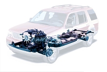 Electronic rollover sensors will be available later in 2001. They measure whether the vehicle is tilting, how fast the lean angle is changing, and whether the combination means the vehicle might roll over. If a rollover situation is determined by the system, it deploys the side-curtain air bags to help prevent passengers from being ejected from the side of the vehicle. The air bags remain inflated for up to 6 seconds - far longer than conventional air bags - to provide additional protection. Explorer also is Ford's first SUV with AdvanceTrac™ interactive vehicle dynamics (available later in 2001). AdvanceTrac™ is a computer driven system that uses a series of sensors to measure whether the vehicle has begun to slide, then applies braking selectively to whichever wheel will bring it back under control. The idea is to prevent accidents before they happen. AdvanceTrac™ is completely integrated into the vehicle's antilock braking system (ABS) and electronic brake force distribution (EBD). This means that Explorer's control system will be just as effective off-road as it is on the pavement. Explorer will have ABS and EBD from the start of production. The fully integrated AdvanceTrac™ system will be available later in 2001. Second-generation front air bags also are standard for the driver and passenger, and Ford's Personal Safety System will be available later in 2001. The Personal Safety System uses dual-stage driver and front passenger air bags that deploy differently based on several factors, including the severity of the crash, front seat occupant safety belt usage and the driver's seat position. Front row occupants also benefit from safety belts with pretensioners that tighten the safety belts in the first moments of a crash and an energy management system that slowly pays out safety belt webbing during an incident - to help prevent injuries. Anchors in all second- and third-row passenger positions offer secure attachments for child safety seat tethers. These active protection systems augment Explorer's robust fully boxed frame, which was designed with energy-absorbing crush zones in the front rails. Steel bars inside the doors enhance protection in side impacts. Head restraints in all seating positions help reduce the risk of neck injuries. At the same time, the design team made Explorer more friendly to other vehicles on the road by lowering its bumper beam height 65 millimeters - more than 2 inches - to be on par with most passenger cars. Security features include Ford's SecuriLock™ passive antitheft system. Only users with the vehicle's authentic key - which contains a computer chip embedded in it - can start the vehicle. A battery saver feature automatically turns off interior, courtesy and cargo lights approximately 10 minutes after the ignition key is turned off and the last door is closed. For better driver comfort - particularly for very tall or shorter stature drivers - power adjustable accelerator and brake pedals are available, while the Reverse Sensing System is available as a parking aid. Explorer's steering wheel tilts and telescopes, using a single control lever. New dual-zone climate controls are available, as is an auxiliary climate control system for the rear seating area. Vehicle serviceability also has been improved. Explorer's annual estimated service costs improve nearly $100 compared with the previous model. To help reduce its impact on the environment, Explorer is an estimated 90-percent recyclable by weight. More than 10 percent of its plastic parts contain post-consumer recycled material. Explorer production will use an estimated 6.3 million pounds of recycled non-metallic parts inside the vehicles every year. Design Explorer is designed to be rugged and contemporary to complement the Ford "Outfitters" SUV family. The SUV family includes the Ford Escape, Explorer Sport, Explorer Sport Trac, Expedition and Excursion. The new four-door Explorer has a clear, powerful vehicle stance and proportions enhanced by simple, rounded forms that build on the vehicle's classically popular design theme. In many areas, form meets function. The exterior door handles are not only easier to use, they're rugged, big and strong. The available running boards are wide and substantial. The jewel-like complex reflector headlamps provide better lighting. In the back, the rear bumper does not appear to be "bolted on" but is fully integrated into the body and has a full-width shelf for easier loading and unloading. The exterior is designed to accentuate the vehicle's independent rear suspension and under-the-skin capabilities. The wider track is designed to give Explorer a more aggressive stance. The shorter front overhang helps make the vehicle look more nimble, while improving its approach angle in rough or steep terrain. Explorer is available in four trim levels, including the popular Eddie Bauer, Limited, XLT and XLS. Noise, Vibration and Harshness Explorer's revised body shape, coupled with improved sealing and literally thousands of noise-control measures, result in a substantially quieter cabin for passengers. Key to the improved sound quality is Explorer's new, fully boxed frame, which improves rigidity, vehicle responsiveness and, in turn, noise, vibration and harshness (NVH) levels. Explorer's frame is 350 percent torsionally stiffer and 26 percent improved in vertical and lateral bending - which contribute to the vehicle's improved NVH levels. In addition, Explorer has new micro-cellular body mounts, new door and hidden liftgate edges, new engine, transmission and exhaust mounts, a revised engine intake system, added insulation throughout the vehicle, a laminated steel dash with magnesium cross bar and a 50-percent reduction in air leakage - all of which add up to luxury-vehicle-like quietness and NVH levels. The Market The SUV market has shown the most significant growth of the decade in the automotive industry. In fact, since 1991, annual sales of sport utility vehic