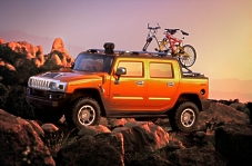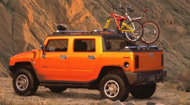 "The SUT, like its brother the H2 SUV, has unbelievable, class-leading, off-road capability. This truck is untamed and built for individuals with a rugged spirit because it can go anywhere and do anything." Derived from the production intent 2003 H2, the SUT concept vehicle is one serious machine: functional, versatile and almost endlessly reconfigurable, to exceed even the most demanding consumer's standards. This daring truck is more refined and finished than its military ancestor in every way, but it shouldn't be confused for just another grocery-hauler or truck wannabe. It blends a superior off-road capability and versatile rear cargo bed with an adjustable bulkhead and a handsome, no-nonsense interior of polished metal, leather and fabric, and state-of-the-art telematics. The H2 SUT concept vehicle is every inch a HUMMER. The SUT concept vehicle preserves the awesome reputation of the H1, the world's most premier off-road vehicle, but adds even more versatility and comfort. HUMMER Presence . . . Off-road "Unlike many show trucks, the SUT concept vehicle evolved from the production-intent H2 SUV, which has undergone extensive testing on some of the most rigorous and intense off-road trails in the world," said Terry Henline, H2 chief designer. The short overhangs of the SUT concept vehicle allow for radical approach and departure angles and exceptional ground clearance for minimal impact on trails. The 17-inch wheels and heavy-duty independent front suspension and 5-link rear suspension provide superior handling, carrying and towing capability. The SUT concept vehicle's unmistakable wide stance and long wheelbase are characteristically HUMMER.