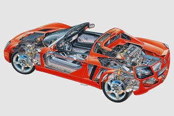 "The Speedster is the natural conclusion of our philosophy of creating an unadulterated sports car," says Dr. Doris Bernhardt, who headed the Speedster project at Opelīs International Technical Development Center in Rüsselsheim, Germany. "Every decision hinged on the same question: Will this make the Speedster a more dynamic drive?" As a result, the open two-seater has a roll-over bar, ABS, a driver-side airbag and seat-belt tensioners as a matter of course but is unburdened by conveniences like power steering, air conditioning, seat warmers or central locking - features that would add weight and clash with its uncompromising character.