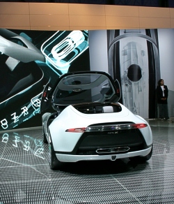 Computer simulations anticipate zero to 100 kph in just 4.9 seconds and a top speed of 250 kph (limited). Despite being so tightly driver focused, the Aero X still offers surprising practicality, again, a quality you would expect to find in all Saab designs. That dramatically sculpted tail conceals a useful twin storage facility, with a conventional hatch opening and sliding drawer underneath. "This study shows how the strength of the Saab brand heritage can inspire bold, innovative design," says Bryan Nesbitt, Executive Director, GM Design Europe. "As we move forward with new Saab product, we will remain focused on carefully cultivating this brand equity in the context of Scandinavian design values." "This concept shows the exciting possibilities that are open to us as we evolve a more progressive design language for the brand," says Jan Åke Jonsson, Saab Automobile's Managing Director. "Our designers, engineers and marketers in Sweden are ideally placed to nurture and communicate the unique DNA of the Saab brand. Their work will ensure that future product proposals express core qualities, such as progressive design, sporty performance and emotional functionality, in a way that is specific to Saab." The Saab Aero X is the latest in series of concepts from Saab, each accentuating different brand qualities. These include the 'four-dimensional' 9X (IAA Frankfurt 2001), the 9-3X Cross-over Coupé (Detroit 2002) and the 9-3 Sport Hatch (IAA Frankfurt 2003). all photos: General Motors/AutoIntell