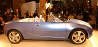 The taillights are powered by LED technology to give the SKY concept a distinctive lighting signature to the rear of the vehicle. The light from the LED lamps is directed in a way that provides a smooth, even glow. SKY's rear lighting provides the benefits of lightning-quick illumination, lower voltage consumption and lightweight packaging. INTERIOR Inside, Saturn designers continued with the upswept character line on the steering wheel center and the door panels. The instrumentation is mounted in the center of the console, instead of the traditional location behind the steering column. This has several benefits. It keeps the driver's eyes closer to the horizon, eliminates obscuration of gauges by the steering wheel and allows for a smaller steering wheel for a sporty feel. The gear shifter on the five-speed manual transmission can be folded into the center console when the vehicle is parked for unobstructed pass-through. "Here's a roadster done the Saturn way,'" said Jill Lajdziak, vice president of Saturn Sales, Service and Marketing. "We've been offering a different kind of car since our creation and now we are showing off a car the world has never seen - a stirring, open-air roadster that is an equal mix of fun and function. People can take their friends along and easily talk as they go." "This concept vehicle is extremely important for Saturn," Smith added. "We want to infuse Saturn design with even more daring and verve, continuing some of the brand's signature cues." photos: General Motors