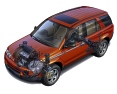The VUE features the largest rear cargo opening in the segment - wide enough to accommodate a 4-foot wide object. The roomy rear cargo compartment is free of clutter, with the spare tire stowed beneath the load floor, as it is on most passenger cars. An ingenious pop-up organizer helps prevent groceries and other objects from sliding around or tipping over. The rear cargo area also includes tie-down points, hooks for plastic grocery bags and a pair of storage receptacles large enough to hold a gallon jug each. Versatility is enhanced with a 70/30 split folding rear seat and a front passenger seatback that also folds flat, allowing long objects such as an 8-foot ladder or a surfboard to be carried inside the vehicle. For added convenience, major operations like folding the seatbacks are designed for easy one-hand operation. Gauges and controls were designed to be clean, direct and easy to understand for intuitive operation. All entertainment and environmental controls are clustered in a single pod conveniently located in the center of the car, with instrumentation located on a separate pod directly in front of the driver. Cruise controls are mounted on the steering wheel. Instrument panel surfaces gently slope away from the occupants to open up the interior and enhance the feeling of spaciousness. Large, high-mounted air ducts deliver heated or cooled air to rear seat passengers. A unique center console design includes a handy space for a purse or planner. Advanced safety features The VUE builds on Saturn's reputation for safety and security with its world-class structural design and other notable safety advancements, including an optional side-curtain air bag system. Saturn's space-frame construction, unique among SUVs, allows engineers to combine optimum strength with minimum weight. The space frame's front and rear crush zones help absorb the energy of a crash while protecting the integrity of the safety cage. Saturn's innovative head-curtain air bags help provide protection from head and neck injuries in case of a side-impact collision. Available as an option on all VUEs, the head-curtain air bags are designed to complement the standard driver and front passenger air bags and safety belts. Also, three-point safety belts are used for all five seating positions. The standardized child safety seat system, LATCH (Lower Anchorages and Tethers for CHildren) system is standard and can be used to secure child safety seats in any of the three rear seat positions, including the center with the 30-percent seat portion folded down. Among the many other safety and security features standard on VUE are daytime running lights, child safety door locks, and a theft deterrent system that prevents start-up without a proper ignition key. Customer peace of mind also is enhanced by the available OnStar system, with its array of safety, security and convenience features. Fun to drive The Saturn VUE was designed to provide a feeling of driving fun, whether on city streets, unpaved roads or mountain switchbacks. This commitment to creating an enjoyable driving experience sets the VUE apart from traditional compact SUVs. Both the 4-cylinder and V6 engines are dual-overhead camshaft designs that are responsive, quiet and efficient. The 16-valve, 2.2-liter 143-horsepower 4-cylinder engine is available with a European-built five-speed manual, or with the advanced VTi variable transmission. The VUE is the first sport-utility to offer VTi, part of GM's new family of VTi variable transmissions. VTi uses a pair of variable-diameter pulleys and a special steel belt to precisely match engine output to vehicle speed. VTi's primary benefit is its ability to allow the engine to operate more efficiently than a traditional step-ratio automatic transmission, achieving virtually the same fuel economy as a manual transmission, as well as excellent acceleration and hill-climbing performance. The available 3.0-liter, 181-horsepower V6 is mated to a five-speed automatic. The Saturn VUE is the first vehicle in its segment to offer a five-speed automatic, which provides closer steps between ratios for smooth acceleration, particularly during passing, along with outstanding fuel economy. Four-wheel independent suspension provides a controlled ride and responsive handling on a wide range of surfaces. The VUE also introduces an advanced electrically-assisted power steering system for precise steering at lower speeds and confident feel on the highway. Unlike a conventional steering system, no engine power is needed to drive a hydraulic pump. As a result, the electrically-assisted power steering system consumes less fuel. The VUE is available with front-wheel drive or all-wheel drive, which is standard with the V6 and optional on models equipped with the 4-cylinder engine and VTi variable transmission. The all-wheel-drive system features a transfer case located just ahead of the rear axle line that can smoothly transfer torque to the rear wheels if the front wheels start to slip. The system is fully automatic, maintenance free and so compact it requires no driveshaft tunnel in the interior, allowing a flat floor. Amenities such as an optional sunroof and a variety of audio systems, including an in-dash six-CD changer, add to the enjoyment of driving the VUE. photos: General Motors