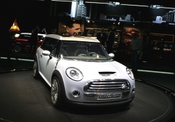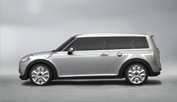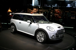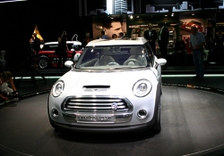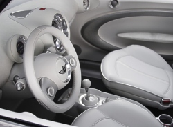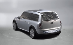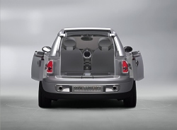 The rear section of the roof, finally, opens up just as conveniently for easy loading. Satellite Silver Metallic Paintwork and Neoprene Contour. MINI Concept Frankfurt stands out in its beautiful silver paintwork in the light, all points not directly in the beholder’s line of vision being kept in a more discreet grey. Soft, resilient neoprene is featured on the black side band so characteristic of the car, extending along the side-sills and wheel cutouts. Interior Design Characterised by “Floating Elements”. The “Floating Elements” concept consistently takes up and continues the car’s exterior statement within the interior: Right from the start when getting into the car, MINI Concept Frankfurt makes a generous and open impression enhanced by the completely free and accessible floor of the car, the foot area covered only by the central “insular element” of the centre console holding the “suspended” seats in position to provide a particularly generous foot area with a very advantageous impression of space. This impression is further accentuated by the free-hovering dashboard with its speedometer in the middle. It almost goes without saying that MINI Concept Frankfurt offers adequate space for four. The rear-seat backrests tilt down individually to form a flat surface flush with the floor of the luggage compartment, while the centre armrest lying between the two seats is integrated in the flat surface and offers additional storage space. Leather, Chrome and Aluminium as the Principal Materials. Throughout the interior, white leather underlines the impression of modern style and generous space, adding a strong touch of sophisticated class and stylish flair. The colour white emphasises the clear lines of MINI Concept Frankfurt, top-quality leather being used on different surfaces, the warm, natural surfaces being supplemented by cool-looking, metallic trim at all appropriate points. An aluminium-coated glass-fibre structure, for example, accentuates the door panels and linings inside the car, while a special carbon-fibre look highlights the foot area in combination with nylon texture carpeting adding a particular touch of sporting style. Forty-Five Years of the Mini Traveller The four-seater Mini with its extra-large luggage compartment was launched in September 1960 in the guise of the Austin Seven Countryman and the Morris Mini Traveller. The term “Traveller“ alone clearly proved that this special version of the Mini was intended from the start for an active target group. Sales of the Mini Traveller from 1960 to 1982 amounted to more than 400,000 units, including a special version of the Mini Clubman as of 1969. (September 12, 2005)