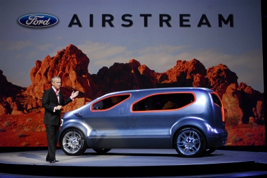 For Airstream, these demographic changes are meaningful as well. RV ownership is highest among retirement-age consumers, and by the end of the decade, 50- to 64-year-old consumers will tally 57 million – a 38 percent increase versus 2000, according to University of Michigan studies. And the number of RV-owning households is expected to grow to 8.5 million during the same period. Growing Ford’s crossover share means breaking through the competitive and fragmenting segment, and the company is leveraging bold designs to win customers. Ford’s crossover lineup already features the functional Freestyle, newly launched agile and modern Edge and, in time, will include a more refined full-size crossover based on the Fairlane concept. Ford designers wanted to push further into the future and tapped inspirations including Airstream’s iconic designs and the optimistic future Stanley Kubrick created and captured in his 1960s cult film 2001: A Space Odyssey. These inspirations are evident – inside and out. The concept’s bold, futuristic front-end explores a new look for Ford, encapsulating the single-surface grille and headlamps into the same graphic. Each of the concept’s bold orange-trimmed window graphics is a unique shape. Its doors are asymmetric as well, allowing for easy loading of passengers and cargo. In addition to the driver’s side hatch, the passenger side features a power clamshell door that runs two-thirds the length of the vehicle. A three-door hatch finishes the rear of the crossover. The futuristic theme and modern form language of the exterior carries through to the concept’s interior. The Ford Airstream Concept features a floating instrument panel with flush-mounted, touch-sensitive controls and a multi-function single gauge display provides the driver all primary information. A Sharp® dual-view screen centrally mounted on the instrument panel provides a camera view and secondary driver-oriented information, while allowing the front-seat passenger to view DVDs and post mobile blogs. The driver and front-seat passenger will navigate in style in modern, pod-shaped swiveling captain’s chairs that also rotate so they can easily socialize. In the rear, lounge-like seating is sculptural, creating a continuous cocoon-like environment wrapped in bold red B&B Italia fabric. The focal point of the rear seating area is a 360-degree screen for entertainment and games. The unique screen also creates ambient mood settings, including a modern lava lamp and virtual fire, as well as a live camera feed. The new HySeries Drive plug-in hydrogen fuel cell featured in the Ford Airstream Concept is more than a concept. This powertrain is already on the road and driving in a Ford Edge prototype. Ford scientists and engineers created this vehicle with partial funding from the United States Department of Energy. The HySeries Drive delivers the combined city/highway equivalent fuel economy of 41 miles per gallon. In this application, the fuel cell’s sole function is to recharge the vehicle’s lithium-ion battery pack as needed. This allows it to work like a portable generator, instead of an engine, as had been the case in previous Ford fuel cell vehicles. The new fuel cell, supplied by Ford partner Ballard, operates in a steady state, allowing a significantly smaller, less expensive fuel cell and drastically improving the durability of the fuel cell. With this system, the fuel cell delivers the power needed to recharge the lithium-ion batteries, rather than to be the primary power source to drive the wheels, as in a typical fuel cell-powered vehicle. In pure electric mode, the Ford Airstream Concept can travel 25 miles before the fuel cell begins operating to recharge the vehicle’s 336-volt lithium-ion battery pack. With the hydrogen-powered fuel cell, the range increases another 280 miles for a total of 305 miles. Safety belts remain the most important safety technology in vehicles. Ford is researching several new safety belt designs, including four-point safety belts found in the front seats of the Ford Airstream Concept. “Inside, outside and under the hood, the Ford Airstream Concept speaks to the future,” Mays said. “Ford is looking out onto the horizon and imbuing crossovers with emotion, made even more powerful by our association with Airstream.” January 07, 2007