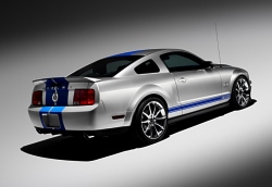 Ford and Shelby Automobiles are at it again, this time in celebration of the fortieth anniversary of the 1968 Shelby Cobra GT500KR. To be unveiled at the 2007 New York International Auto Show, the 2008 Shelby GT500KR—the most powerful Mustang to date—will once again mark Mustang as ‘King of the Road.’ “I’m proud to once again be a part of an historical moment, bringing back the ‘King of the Road’ Mustang, and collaborating with Ford SVT and Ford Racing” said Carroll Shelby. “I’m committed to continuously upping the ante when it comes to performance, and it’s great to be doing it with Ford.” “The return of the Shelby GT500KR further establishes Mustang as the true king of the pony car segment,” said Robert Parker, manager of Ford Car Brand. “With the unveiling of the new KR we are staying true to the promise we made our loyal Mustang fans to continue Mustang’s prowess by bringing new, exciting and more powerful Mustangs to market.” |