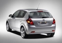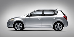The wheels are a two-part design, featuring five double-spokes arranged with a recessed black power-coated centre and brightly polished convex perimeter spokes. These dramatic wheels sport 265/30 R19 low profile tyres. Key attributes which the pro_cee’d and ‘sporty hatch’ models will have in common include the lowered roof line (down by 25 mm compared to the five-door cee’d) and shallower side windows ringed in chrome trim that create a robustly sporty window graphic. The pro_cee’d interior is designed to accommodate four people and is trimmed to give a strong ‘performance’ feeling with deeply matt surfaces. Like the exterior, the cab uses bright metal and dense matt black elements, but in the interior these appear to ‘float’ amidst areas of contrasting leather trim. Facing the driver, the three recessed dials of the instrument panel have separate metal cowlings set beneath a top cowling that also appears to ‘float’ above the dashboard. The short, leather-shrouded gear lever is set in a bright metal surround topping a black centre console that rises between the front seats to position a battery of minor switchgear within easy reach of the driver. In Paris, Kia will unveil its all-new C-segment estate model, the cee’d ‘sporty wagon’ prior to its launch in mid-2007.