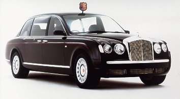 Photo: Bentley AUBURN HILLS, Mich. - Bentley Motors unveiled the first photos of the Bentley State Limousine, which will be presented as a gift to Her Majesty Queen Elizabeth in 2002 to celebrate her Golden Jubilee. This is the first Bentley ever to be used for official state occasions. This Bentley State Limousine differs from those previously supplied by the Crewe, England factory as it is a purpose-built, unique car rather than a production version modified for state purposes. It bears no resemblance to any other Bentley, and has been designed with continual input from The Queen, Prince Phillip and the Royal Family's head chauffeur. Bentley is entirely responsible for the design, styling and chassis, while manufacturing and supplier partners from the British Motor Industry assisted the Bentley-led consortium with bodywork, electrics, trim packaging and engineering and powertrain. While this vehicle will be the first State Bentley, the tradition of Crewe-designed State Limousines for the Royals dates to 1950 when a Rolls-Royce Phantom IV was delivered to Princess Elizabeth. Since then, four additional Rolls-Royce limousines have been constructed and delivered for official use. The Bentley State Limousine will be presented to The Queen in May 2002 and perform its first official state function in June. (Dec. 21, 2001) [Homepage] [