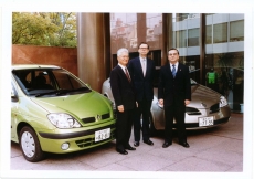 Louis Schweitzer (Renault), Yoshikazu Hanawa and Carlos Ghosn (Nissan) Photo: Renault Paris - In a natural step in the development of their Alliance, Renault and Nissan announced today a plan to accelerate development of the Renault-Nissan bi-national group, in keeping with the principles of the Renault-Nissan Alliance and Equity Participation agreement signed in March 1999 and the Alliance Charter. The timing of this next step has been brought forward as a result of the fast and strong success of the Nissan Revival Plan and the successful implementation of numerous common programs within the Alliance. The plan provides for cross-shareholdings, with Renault exercising its existing warrants and increasing its stake in Nissan up to 44.4% and Nissan investing a stake of 15% in Renault. It also calls for the creation of a joint management structure with a goal to reinforce the Alliance’s common mid- and long-term strategy in order to move the Alliance forward in a balanced way while reaching for higher performance. Considering the strengths of the Renault-Nissan Alliance strategy, the French State has decided to support this move and will further reduce its stake in Renault to 25%. The timetable of this public offering will depend on market conditions. Under the memorandum of understanding, which would be signed by Louis Schweitzer for Renault, and Yoshikazu Hanawa and Carlos Ghosn for Nissan, Renault would now be allowed to exercise the warrants it has held since signing the March 1999 agreement and raise its equity participation in Nissan from 36.8% up to 44.4% at the previously agreed price of JPY400 per share, for a total of EUR 2 billion. Nissan will issue the corresponding 540 million shares. Additionally, Nissan would acquire an equity stake of 15% in Renault, through a reserved capital increase. This transaction will have no impact on Nissan’s performance to reach the commitment made to reduce net automotive indebtedness in the framework of the Nissan Revival Plan. The shares will be ordinary shares. However, under French law dealing with self-control, the voting rights associated with these shares would not be executable while they’re held by Nissan. Renault would submit a proposal to its Board of Directors and shareholders for an additional Nissan representative to join the Renault Board as a non-executive member. Nissan will make a similar proposal for a Renault representative to join the Nissan Board from Renault as a non-executive member. Nissan will propose Carlos Ghosn as its representative and Renault will propose Shemaya Levy as its representative. The intended new cross-shareholding illustrates the global balance of the Alliance and ensures that each company will have an interest in the enhanced performance of the other. Under the memorandum of understanding, Renault and Nissan would create Renault-Nissan BV, a joint and equally owned management company operating under Dutch law, with headquarters in Paris and Tokyo. Renault-Nissan BV will steer Alliance strategy and supervise common activities on a global level, while respecting the identity and culture of each company and not interfering in operations. Renault-Nissan BV would have sole responsibility for decisions on mid- and long-term planning (three, five and ten year plans), on commonalities in products and powertrains, and on principles of financial policy. It will validate Renault’s and Nissan’s product and powertrain plans. It will wholly own and manage existing (Renault-Nissan Purchasing Organization) and future joint companies, which will establish exclusive contractual relationships with Renault and Nissan. Renault-Nissan BV would also make proposals to Renault and Nissan on issues such as the creation of joint companies, significant changes in market or product coverage, major investments and third-party strategic cooperation. Existing Cross Company Teams, which have been building the Alliance over the past two and a half years, would report to Renault-Nissan BV, which will replace the Global Alliance Committee (G.A.C.), the current governing body of the Alliance. The position of President of Renault-Nissan BV would be held by the Chairman and Chief Executive Officer of Renault and that of Vice President by the President and Chief Executive Officer of Nissan. Six top executives from both companies will complete the eight members of Renault-Nissan BV’s management team. The initial officers of Renault-Nissan BV would be: