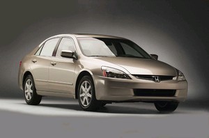 Honda Accord Photo: Honda TORRANCE, Calif. - The Honda Accord undergoes the most dramatic change in its 27-year history and will bring a new level of world-class style, performance and sophistication to the midsize class when the 2003 models go on sale Sept. 9, American Honda Motor, Co., Inc., announced today. The Accord, the best-selling car in America in 2001, features dynamic new styling for both sedan and coupe models. Styling for the sedan and coupe is more distinctive and the two models will share only their headlights for '03. A host of additional standard equipment has been added on all models, including anti-lock brakes, tilt and telescopic steering wheel and 5-speed automatic transmissions. Accord sales are expected to top 400,000 during the 2003 model year. That will push cumulative U.S. Accord sales to more than eight million since the Accord first went on sale in 1976. New 4-cylinder and V6 engines team with new automatic and manual transmissions to give the 2003 Accords more power, improved fuel efficiency and lower emissions than the powertrains they replace. A new V6-powered Accord Coupe equipped with a 6-speed manual transmission will be available early in 2003. Powertrain highlights include: