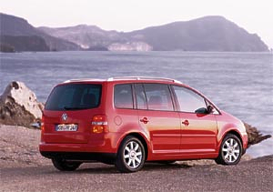 The Touran is being launched with a choice of one FSI engine and two TDI engines. The Touran 1.6 FSI (85 kW/115 bhp) will sell at a basic list price of 21,100 Euro. The TDI models are listed at 21,800 Euro (Touran 1.9 TDI, 74 kW/100 bhp) and 24,350 Euro (Touran 2.0 TDI Trendline, 100 kW/136 bhp). The two-litre turbocharged direct injection diesel is an entirely new development with four valves per cylinder. All these engines comply with the EU 4 exhaust emission limits and thus qualify for a tax concession on their German home market. A unique feature in this market segment is that the FSI and TDI models have a six-speed gearbox. At a later date, the TDI-engined versions will be available with an innovative direct shift gearbox (DSG), also with six forward ratios. This new unit combines the advantages of an automatic transmission with the agility and economy of a conventional manual-shift gearbox. The FSI engine can also be combined with a new six-speed automatic transmission designed with the emphasis on refinement. Apart from the New Beetle Cabriolet, the Touran is the only car in the world to be equipped with a transversely mounted six-speed automatic transmission. The body, interior, running gear and many aspects of the powertrain have been newly developed for use in the Touran, which has five or, as an optional extra, seven seats. Among the most impressive features of this well-planned van concept are the adaptable interior layout and the exceptional amount of space provided. The interior has up to 39 different shelves, bins and storage compartments; its practicability and safety will prove ideal for owners who attach great importance to mobility. The Touran will satisfy the demand for a highly versatile family, leisure or business transport. The exceptional agility and safety for which this new Volkswagen model is noted in all driving situations is also due to its newly developed running gear, with McPherson front suspension and innovative four-link rear suspension. The new running gear ensures the highest possible standards of dynamic stability and ride quality. For the first time on a Volkswagen model in this segment, there is electro-mechanical power steering. Compared with conventional power steering systems, this uses less energy and therefore improves fuel economy; the degree of power assistance is dependent on road speed, and the system can be matched more easily to the characteristics of the car to which it is fitted. The Touran's body, laser-welded and exceptionally rigid, offers a high level of passive safety. With front airbags and front side and head-level airbags as well as active head restraints on both front seats, the Touran has a comprehensive occupant protection system. Lap-and-shoulder seat belts are standard at all seven seats. Disc brakes (with ventilated discs at the front are fitted all round, and ESP with Brake Assistant and ABS are also standard features that guarantee high active safety. A third row of passenger seats can be installed in the Touran as an optional extra. The two seats in the third row are capable of accommodating adult passengers, and can easily be folded away separately into the floor of the interior when not needed. The highly efficient load area can be varied in size according to the number of seats in use: in the classic five-seat configuration it holds up to 695 litres, but this figure can be increased to as much as 1,989 litres if the rear seats are removed. The maximum payload is more than 660 kilograms. (Jan. 13, 2003)
