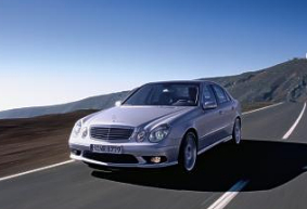 The exceptional status of this new AMG high-performance estate is immediately obvious when one looks under the bonnet or opens the tailgate. Thanks to turbocharging the eight-cylinder AMG engine develops an output of 350 kW/476 hp at 6100 rpm from a displacement of 5.5 litres, as well as an outstanding torque of 700 Newton metres at between 2650 and 4500 rpm. Depending on the position of the rear seats the load capacity varies between 690 and 1950 litres (VDA measuring method). No other series-production estate boasts as much output and torque or offers such a large, flexible interior as the new E 55 AMG Estate. 34 percent more output and 32 percent more torque The new E 55 AMG Estate develops 34 percent more output and 32 percent more torque than its predecessor with a naturally aspirated V8 engine (260 kW/354 hp and 530 Newton metres). Its performance figures need fear no comparison with sports cars: the Estate accelerates from standstill to 100 km/h in just 4.8 seconds (predecessor: 5.9 sec), while the maximum speed is limited to 250 km/h. Dynamic driving enjoyment and the greatest possible comfort are guaranteed by the five-speed automatic transmission with AMG SPEEDSHIFT, steering wheel gearshifting and a manual driving programme. More rapid gear changes, active downshifting when braking, and torque converter lockup after first gear provide extremely agile handling. Unique high-tech innovations for the braking system and suspension Technological exclusivity is the order of the day for the braking system and suspension of the E 55 AMG Estate. Large, internally ventilated and perforated brake discs ensure outstanding deceleration figures and fade-resistance. In conjunction with the electrohydraulic braking system Sensotronic Brake Control (SBC™) this makes for optimal driving safety. The AMG sports suspension AIRMATIC DC, with an adaptive damping system (ADS II), features new spring struts with a reduced air volume and thicker stabilisers. The springs and dampers instantly adapt themselves to the style of driving at any given moment by microprocessor control, and the driver is able to select the required configuration in three stages from comfort-oriented to sporty/stiff at the touch of a button. Whatever the load carried, the rear axle with its standard level control system guarantees an identical spring travel at all times - providing the ideal conditions for maximum ride comfort. Characteristic AMG bodystyling and an AMG sports exhaust system