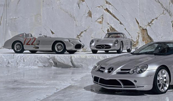 Mercedes-Benz McLaren, the original 300SLR roadster and the "Uhlenhaut Coupé" (in background)