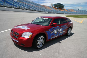 The Chicagoland Dodge Dealers Advertising Association is the official vehicle partner of Chicagoland Speedway and is using the July 11, 2004 Tropicana 400 to showcase the return of the Dodge muscle car. "Dodge has been a tremendous partner of Chicagoland Speedway and we are excited to have the new 2005 Magnum RT as the Official Pace Car for our July Tropicana NASCAR weekend," said Matthew Alexander, vice president and general manager of Chicagoland Speedway. "As one of the premier sporting facilities and events in the Chicago market we are an extremely valuable resource for companies looking to market new products. The new 2005 Dodge Magnum RT leading the NASCAR field to the green flag to start our races is a powerful way to reach the consumers." The Dodge Magnum RT Pace Car will have 20" wheels and Competition Graphics. It is powered by the HEMI engine, which has 340 horsepower and 390 lb.-ft. of torque and can go from zero to 60 mph in just 6.3 seconds. The HEMI-powered 2005 Dodge Magnum RT features an industry-first cylinder deactivation system which saves fuel while retaining HEMI power. The Chrysler Group Multiple Displacement System (MDS) seamlessly turns off the fuel consumption in four cylinders of the 5.7-liter HEMI engine when V-8 power is not needed. This provides a combination of world-class performance and fuel economy. Chrysler Group has developed and is the first to offer MDS on a modern, large-volume vehicle in North America. "We're thrilled to see the all-new Dodge Magnum featured as the Pace Car at this year's race. The timing is perfect since Magnum is just entering Dodge showrooms. It's sure to grab a lot of attention," said Bill Gustaveson, president of the Chicagoland Dodge Dealers Advertising Association. The Chicago Metro Dodge Dealers Advertising Association (Chicagoland Dodge Dealers) represents the 55 Dodge Dealers in the metropolitan Chicago area. The Association has been a sponsor of the track since 2000. (June 24, 2004)