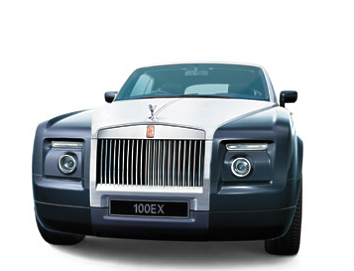 Photos: RR The rear of the motor car tapers into a boat-tail style and features the 'countryman' boot, split to give a separate lower tailgate which, when down, provides a completely flat surface, ideal for picnics or as an elevated platform with its inlaid fibre matting. A tailored soft top made from a new advanced material, featuring fine metallic threads, protects passengers from the elements. Inside, the hood is lined with the familiar cashmere/wool blend fabric seen in the Phantom. Painstaking design of the folding mechanism means the hood can be concealed in an extremely small storage area, keeping intrusion into the luggage and passenger space to a minimum. Figured Mahogany is used for the interior cabinetry, complemented by a special metallic finish which is used in a swathe across the dashboard and in the finer detailing. Sculptured seats are finished in rich Dark Curzon leather, with additional leatherwork in contrasting aniline tan. Suspension and steering geometry are shared with the new Phantom: double wishbone front and multi-link rear axles, with air springs, and rack and pinion steering though it is shorter by 165 mm (6.5 in) and 71 mm (3 in) lower. The 100EX sits upon 21-inch wheels finished in Meteor Silver. Power is supplied by a 9-litre V16, 64-valve naturally aspirated engine. Speaking at the Geneva Motor Show, Rolls-Royce Motor Cars Chairman and CEO, Tony Gott, said, "It is always exciting to unveil something new at a motor show, but particularly something as fresh and innovative as the 100EX. In wanting to mark this very special year we decided that there would be no better way than to revive the EX motor cars philosophy and produce something unique to show around the world." There is no plan to produce the 100EX as a series model. (March 02, 2004)