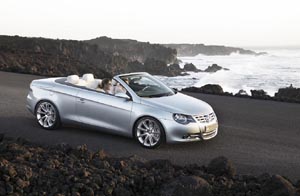 A new generation of automobile Taking a fresh approach to the interplay of dimensions. The progressive concept of this design study, with its "Pure Essence" silver metallic finish, features an array of newly developed components, the use of which enables an exceptionally intelligent interplay of vehicle dimensions. The concept C has moved away from the class of cabriolet found in the A segment. Positioned in the mid-class segment, it is as much a cabriolet as it is a coupé. And the concept C is wider than any other cabriolet in the A or B segment - which makes for new dimensions in dynamics. Because of its extreme width of 1.81 metres (1.43 m high / 4.41 m long), this design study rests as sturdily upon its wheels as would a beefy, high-calibre sports car. A fully-fledged four seater. Indeed, the liberal dimensions of the body shell also create a sumptuous feeling of spaciousness in the vehicle's newly designed leather- and timber-enhanced interior, with ideal ergonomics and generous amounts of space in both the front and rear passenger compartments. The world's most innovative roof system Coupé and cabriolet roof: The way in which this five-level roof system tucks away out of sight is truly astonishing. Once the lock-in mechanism is released, the sunroof retracts to the back of the car (stage 1). The rear end of the roof (the C pillar, including the rear windscreen) then lifts up and glides forward (stage 2). By this time, the glass sunroof is moved underneath the rear end of the roof, forming a compact sandwich unit. The system hydraulics now fold the boot lid, to which the rear shelf is attached, up and back (stage 3). The roof rails release themselves from the windscreen frame, retracting into the available cavities in the sandwich unit (adjacent to the rear side windows). Et voila! The coupé has now been transformed into a cabriolet. Volkswagen future design The front end. The concept C's robust architecture and the principles employed to design its contours produce a clear outlook on the new design for future Volkswagen automobiles. The unmistakable look of the aluminium radiator grille combined with striking round headlights are the progressive new "face" of the front end. The positioning of the headlights and radiator grille has also substantially influenced the modulation of the concept C's bonnet, with the V-contour of the grille reproduced in a wide depression on the bonnet. The sides along these V-contours are raised to a slight curve, giving the concept C distinctly contoured wings and wheelhouses. The result is an exquisitely muscular shoulder section. · The rear end. The rear section of this vehicle is similarly athletic, with the wings gently curving up over the wheelhouses - which is why the aerodynamically fashioned lower edge of the boot lid (which, when lifted, reveals 400 litres of stowage space) is embedded between the wings. The silhouette. The concept C's silhouette is determined chiefly by the tapered design of the vehicle's rear end. Particularly conspicuous features are the joints running along the vehicle's side and the fact that both the bonnet and the boot lid reach all the way down into the wings. The line dividing the bonnet and the front wings extends quasi seamlessly into the line marking the lower edge of the side windows. The rear one of these lid joints extends the sweep of the side window in a dynamic contrary motion. When the roof is up, the interplay of all the forms visible at the side of the vehicle produces an extremely elegant, aesthetically appealing coupé contour. When it is down, a side view of the concept C reveals all the charismatic charm of a classic cabriolet. Convention was not at play in the homogeneous design of the windscreen frame, which, because it does not extend all too far into the passenger compartment, affords vehicle occupants unadulterated open-air-driving pleasure. (March 2, 2004)