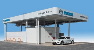 HIROSHIMA, Japan - Mazda Motor Corporation recently put a hydrogen filling station into service that will store and supply fuel for the company's ongoing hydrogen vehicle research and development. The new hydrogen station began operating in early February and is located near Mazda's global headquarters in Hiroshima. This unique filling station is the first in the Chugoku region of western Japan, and is another tangible step forward in Mazda's support for the development of a hydrogen-fueled society. The facility supplies fuel to both the hydrogen engine test facility and Mazda's hydrogen rotary-engined vehicles currently on the road for under development and testing purposes. High-pressure hydrogen gas is stored at about 2,900 psi in compressed hydrogen gas tanks and then further pressurized to over 5,000 psi for delivery to the vehicles. The inventory stored at Mazda's hydrogen fueling station enables up to 10 vehicles per day to be fueled with hydrogen gas.