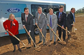 Ford Motor Co. Chairman and CEO Bill Ford and Florida Gov. Jeb Bush are shown at the groundbreaking for Florida's first hydrogen fueling station in Orlando, Friday, Feb. Feb. 18, 2005. From left, Florida Dept. of Environmental Protection Secretary Colleen M. Castille, Gregory M. Vesey, ChevronTexaco, Bush, Ford, Florida Sen. Lee Constantine and Dale Oliver, Progress Energy. At rear is one of eight Ford V-10, E-450 hydrogen powered shuttle busses built by Ford.