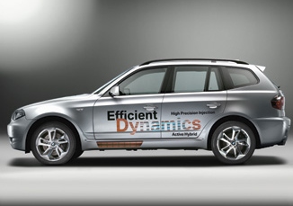 X3 Concept High Precision Injection and Brake Energy Regeneration: BMW technology innovations for significantly reduced consumption for all models. • The “High Precision Injection” fuel injection technology, to be introduced by BMW in the years to come, is the first jet-guided direct injection of petrol suitable for mass production. This technology achieves the full savings potential in consumption that cannot be reached by current solutions on the market. • Under the title of Brake Energy Regeneration, the BMW Group introduces the regeneration of energy, which has been released so far in the form of heat from the brake disks, via an intelligent alternator control as well as an automatic engine start/stop system. BMW Active Hybrid to debut in Asia: spontaneous, exhilarating acceleration and economical. For high-performance models, the BMW Group has developed the exemplary drive concept, BMW Active Hybrid, the BMW interpretation of a hybrid drive based on active transmission and Super Caps. (Oct. 15, 2005)