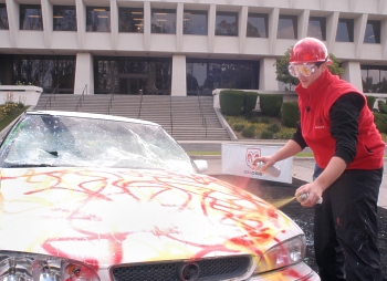 paint gun to lunging shopping carts and running over the vehicle in a