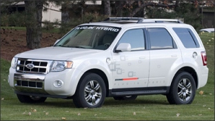 “The electrification of vehicles has sparked significant interest in this country. The delivery of this Ford Escape Plug-In Hybrid research vehicle today represents another step in our development and understanding of the technology and its place in the overall energy picture,” said Sue Cischke, senior vice president, Sustainability, Environment and Safety Engineering. “PHEVs are one element of our blueprint for sustainability that includes actions ranging from refinements in gasoline fueled engines and transmissions, to the development of hydrogen fuel cells.” “We are united in a common cause,” said Lynda Ziegler, Southern California Edison’s senior vice president, Customer Service. “We bring our expertise in energy production, delivery and management, and combine it with Ford’s expertise in hybrid technology. Together, we are seeking solutions to address the needs of our shared customers and to ultimately help this nation achieve energy independence and reduce greenhouse gas emissions. “This is not about simply connecting the car to the grid. It’s about integrating vehicles and energy storage technologies into the energy system of the future”. The two companies are exploring new business models related to the electrification of vehicles that could help lower the cost of PHEVs to make them more affordable to consumers. “Although the energy infrastructure is in place, significant challenges remain for widespread adoption of PHEVs,” said Cischke. “Cost, durability and reliability issues all need to be addressed before these vehicles can make a significant impact on the global issues of climate change and energy security.” Ford and SCE will jointly conduct testing of the vehicles, some of which may be evaluated in typical customer settings to model overall home and grid values. The testing will provide valuable data related to the durability, reliability and safety of new battery technology. The cost of advanced lithium ion batteries means the technology is currently not economically feasible for widespread vehicle application. Photo: Ford (Dec. 3, 2007)