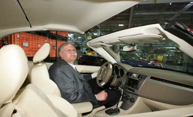 In an effort to improve productivity and ergonomics, a “happy seat” or ergonomic assist seat, has been incorporated into the production of all vehicles at SHAP. This happy seat was developed based upon the need to secure four fasteners in the center console that were previously unreachable without workers getting in and out of the vehicle on their hands and knees. After benchmarking other Chrysler Group plants, it was determined that the happy seat was the best solution. Union and management teams worked together to design the seat to meet the ergonomic needs of workers and vehicle production. The seat is now utilized 100 percent by workers. The addition of this seat has ensured that anyone can now do the job, and is a significant ergonomic improvement over the previous method of assembly. In yet another example, an industry first “Spider Fixture” was developed by a joint team consisting of UAW members, Advanced Manufacturing Engineers, product engineers and convertible top supplier Karmann to set glass in the new Chrysler Sebring Convertible. This one-of-a-kind fixture utilizes laser sensors,improving productivity and consistency in setting front door glass and quarter glass. All Photos: Chrysler (June 2, 2007)