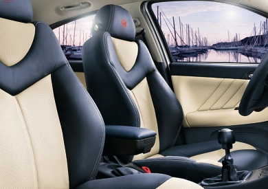 The red coulisse on the gaiters of the gear lever and hand brake knobs and on the document pockets of the seats gives an extra touch of refinement. The kick-panels decorated with the M&N logo and the rope and frogging pattern on the mats underline the bond between this 147 and the sailing world. There is a generous range of M&N accessories that includes a large bag, a key-ring and a document folder with the company logo. Standard equipment on the Alfa 147 Murphy&Nye also includes foglights, dual zone automatic climate control, Cruise Control, a trip computer, VDC, ASR, 6 airbags and a radio complete with CD player and 6 speakers.