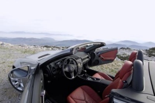The designers have honed the looks of the cult two-seater for added sportiness. Eye-catching features include the new-look front bumper with a modified air-dam arrangement and a more pronounced V-shape, while the area around the Mercedes star now stands out more boldly. The designers have also remodelled the vehicle's tail, with the diffuser-look styling at the bottom giving the Roadster an even more powerful appearance from the rear too. This is further emphasised by the trapezoidal exhaust tailpipes and the AMG-inspired darkened tail lights. The now larger exterior mirrors feature LED indicators with a pronounced arrow shape, while the range of light-alloy wheels is also almost entirely new. High-quality cockpit and new three-spoke sports steering wheel
