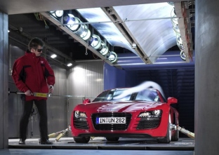 The Audi climatic wind tunnel is the first facility of its type that can generate speeds of up to 300 kilometers per hour. Along with heat and cold, rain simulations and sun simulations with up to 1,200 watts per square meter are also possible. Snow can also be created as needed. “With the climatic wind tunnel, we’ve acquired another instrument that will allow us to effectively contribute to reducing CO2 . Optimized and economical cooling systems can be developed for cars based on the insights gained on the test stands,” Dietz said. And neither does the climatic wind tunnel present any limitations when it comes to large SUVs, sports cars or quattro models. The six-square-meter air jets that force air into the test section make it possible, without modification, to develop and then further enhance the newest generation of cars. During construction of the wind tunnel, a dual-axis drive developing 250 kW (340 hp) was installed for cars with permanent all-wheel drive, which also makes it possible to test quattro models under realistic conditions. The climatic wind tunnel is part of the AUDI AG wind tunnel center in Ingolstadt, which includes three wind tunnels covering more than 10,000 square meters and currently employs 40 people. Along with the main task of advancing the development and optimization of Audi’s car models, the facility also offers outstanding research conditions for top athletes. Visitors in recent years have included competitive skiers from Germany, Switzerland and Sweden, as well as Australian swimming star Ian Thorpe. Photo: Audi (2008-02-27)