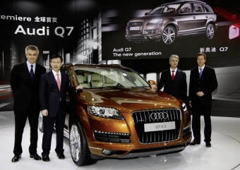 A novel technology from the Modular Efficiency Platform further improves fuel efficiency in all the engines: the recovery system, which during braking and coasting phases converts mechanical energy into electric energy and buffer-stores it in the battery. It reduces CO2 emissions by up to 5 g/km (8.05 g/mile). The range of optional equipment is rounded off by technologies from the luxury class. The radar-supported adaptive cruise control regulates the speed and the distance to the preceding vehicle in a range from 30 to 200 km/h (18.64 to 124.27 mph) by acceleration and deceleration. If a threat is detected, the integrated Audi braking guard warns the driver at two levels. From a speed of 60 km/h (37.28 mph), Audi lane assist helps the driver stay in lane by means of a camera that recognizes the lane lines. Audi side assist ensures safe lane changes above 30 km/h (18.64 mph) with the aid of a radar system that monitors the traffic pattern within 70 meters (229.66 feet) behind the vehicle. Finally, the Audi parking system advanced assists parking by means of a rearview camera and reference lines on the onboard monitor. The world’s strongest diesel SUV: The Audi Q7 V12 TDI