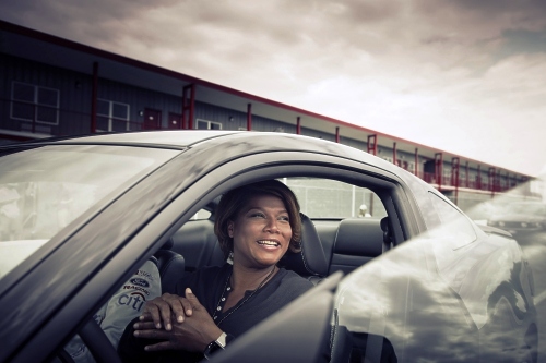 On June 24, 2009, Latifah took a detour from promoting her new album to head to New Jersey Motorsports Park, where Colin Braun and the 2010 Mustang were waiting for her. "Are you ready," Braun asked. Latifah held on tight while Braun white-knuckled her through a few hot laps. Latifah then proclaimed, "It's time to conquer this track," donned her own helmet and went out to experience the raw power and handling of the new 2010 Ford Mustang. "I've been a little jealous of people riding around town with their Mustangs," Latifah said. "Now I got one. No more jealousy. They can eat my dust." Latifah's dream-come-true is brought to life through the video chapters available at www.the2010mustang.com. (August 05, 09)