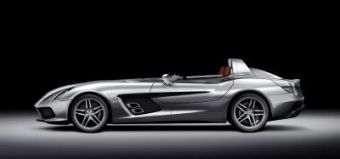 Three letters are all it takes to make car fans’ hearts beat faster: SLR. In the 1950s the Mercedes-Benz SLR 300 celebrated victory after victory. It won the Mille Miglia, the Eifel race, the Targa Florio as well as the Tourist Trophy. It was driven by the stars of the time: Juan Manuel Fangio and Karl Kling - and, first and foremost, by the British racing driver Stirling Moss. At ten hours, seven minutes and 48 seconds he still holds the Mille Miglia record. This is why the modern-day version of the legendary SLR carries the additional words “Stirling Moss” in its name. As the new SLR Stirling Moss unites the character of the current SLR models with the fascination of the SLR of 1955. The core values of both the historical and the present-day SLR models include an exciting new design, innovative technology, high-class materials displaying perfect craftsmanship, and, above all: a unique driving experience for all the senses. Highly puristic concept without a roof or a windscreen Remaining totally true to the specifications of the 300 SLR, the new Silver Arrow’s equipment is extremely sophisticated and yet at the same time decidedly puristic, doing without both a roof and side windows. There are just two wind deflectors a couple of centimetres in height to protect the driver and passenger from the airflow. Two air scoops integrated into the bodywork serve as roll-over bars. With this extreme concept the new SLR Stirling Moss is visually very different from all the other vehicles which belong to the elite sports car class.