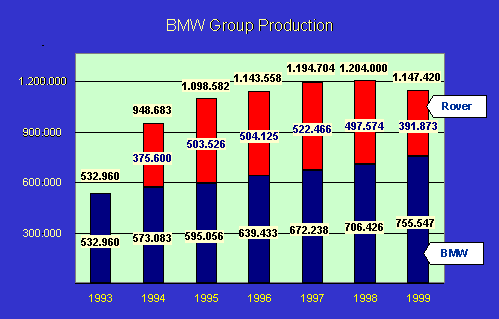 The total number of BMW, MINI and Rolls-Royce brand vehicles delivered to customers increased by 3.5% to 1,373,970 units (2005: 1,327,992 units). Some Production History, showing the impact of the Rover acquisition: