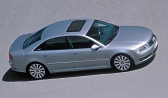 Four areas that are linked by a single idea: the idea of ease. In other words, ease in the sense of design harmony, ease of acceleration, the ease with which it can be handled - the driver of an A8 does not have the impression of handling a large saloon car - and, finally, ease of operation. Its design gives visual expression to the unique character of the new A8. Expansive, strikingly arched surfaces are framed by precisely plotted lines. The silhouette of flat front and short body overhangs, plus the highly contoured rear end, provides a clear indication of its dynamic potential. Two powerful, spontaneous V8 engines, a 4.2 litre version with an output of 246 kW (335 bhp) and a 3.7 litre version developing 206 kW (280 bhp), will be available at the market launch in autumn 2002. One new feature in the A8 is the 6-speed automatic transmission with tiptronic function, which constantly assures an optimum transition between the various speed stages. As an option, it is also possible to change gear via shift paddles mounted on the steering wheel; the ergonomic advantages of this concept have already been demonstrated on Audi's Le Mans champion model, the R8.